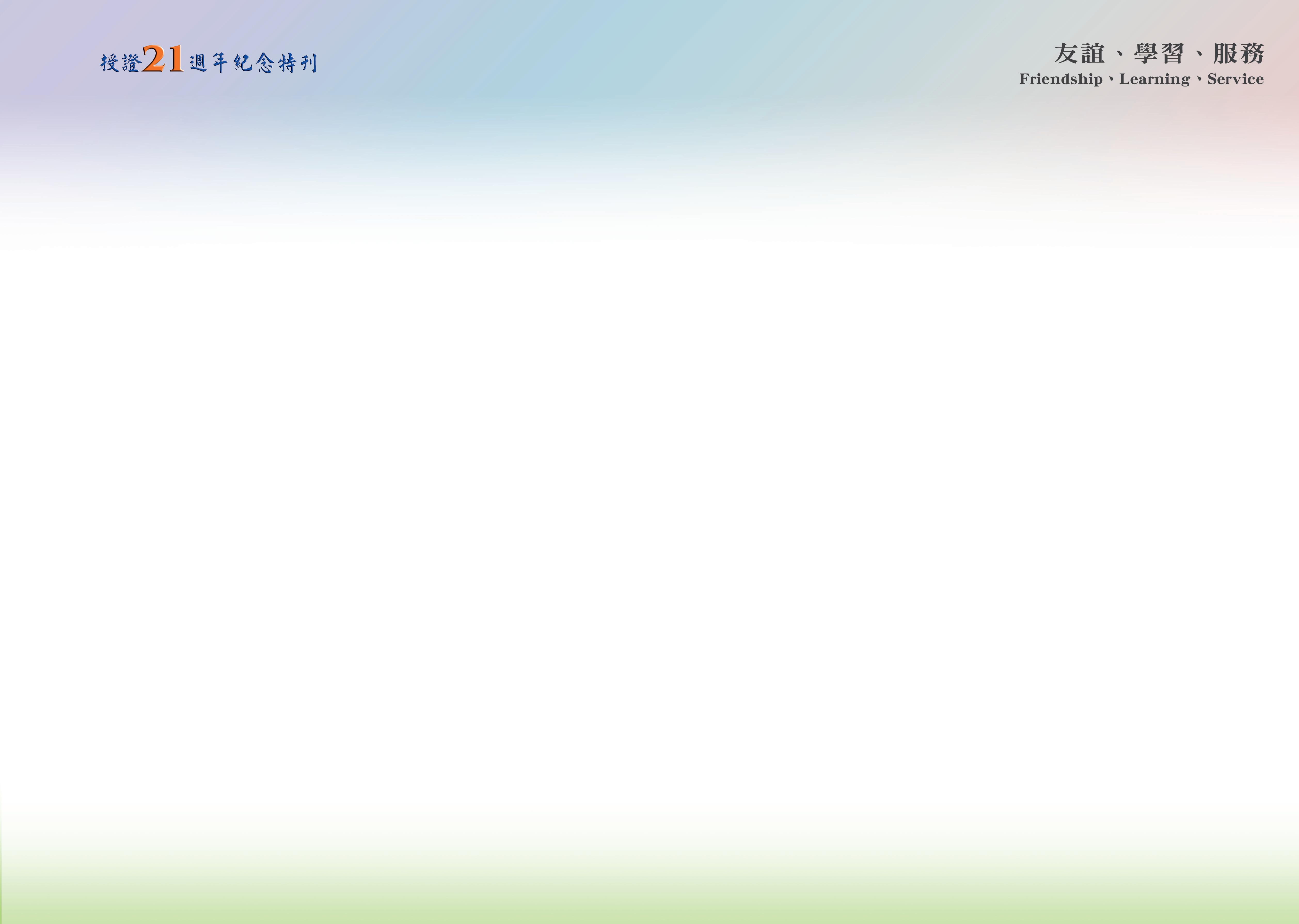 我相信在這個充滿熱忱無私奉獻與傑出的工作團隊的努力之下,貴社在未來 一定會開創另一個新局面、新的高峰,繼續發揚扶輪服務精神。 最後敬祝貴社21歲生日快樂,在座的各位貴賓、各位扶輪先進,各位社友大 家身體健康,事業成功,萬事如意。