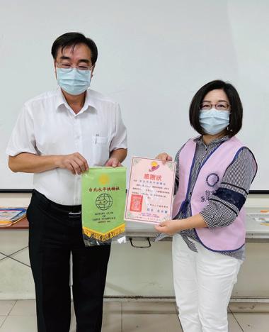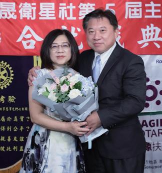 今年度的社長Mandy接任以來,仍處於疫情的狀況,一開始也無法像過去一 樣完全正常的活動,不過Mandy社長仍然能夠帶領她的的團隊以及全體社友,也 做了許許多多的服務,特別是Mandy社長背後最堅強的支持者吳明輝先生,每次 的例會或活動,都能看到他的身影,而且一直幫大家拍出特別專業又美麗的照片, 讓大家都樂於參加,請Mandy社長及她的夫婿吳明輝先生一起站起來,讓我們以 最熱烈的掌聲來給予肯定和感謝他們的付出。