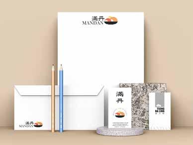 03 滿丹 ---- 取自萬丹的台語發音,一來也有 < 滿單 > 生意訂 單滿滿的好兆頭涵義。 LOGO ---- 滿丹三球圓弧取自英文MANDAN m + D 字體組 合疊出小山狀,外型神似冰品的球狀感。 再加上萬丹秋冬日照充足,適合種植紅豆,且在地的氣候跟 人都很熱情,所以搭配色系是來自萬丹溫暖炎熱的日照,適 合做紅豆冰品的相關產出,冰品盤也有英文D的倒放意象。 屏東萬丹鄉是出產紅豆的寶地,也是家父從小生長的故鄉, 印象中的小時候每到寒暑年節假期,北漂的父親便會買好車 票,攜家帶眷的回到他熟悉的成長地,對萬丹的每日艷陽高 照,廣闊無際一片片的稻米田,這種無拘束遼闊的感覺,讓 來自北部囡仔的我,深深著迷 ! 這次的滿丹企業識別系統,也是由藉幼時的回憶發想衍生出 一系列規劃設計,而這次產出的作品集成果,也是想與父親 分享我多年工作的學習成果,感念他在我人生學習道路上無 私的奉獻與付出。 https://issuu.com/tsengpeiling/docs/912_ MANDAN Red bean raw southern country It’s Mandan