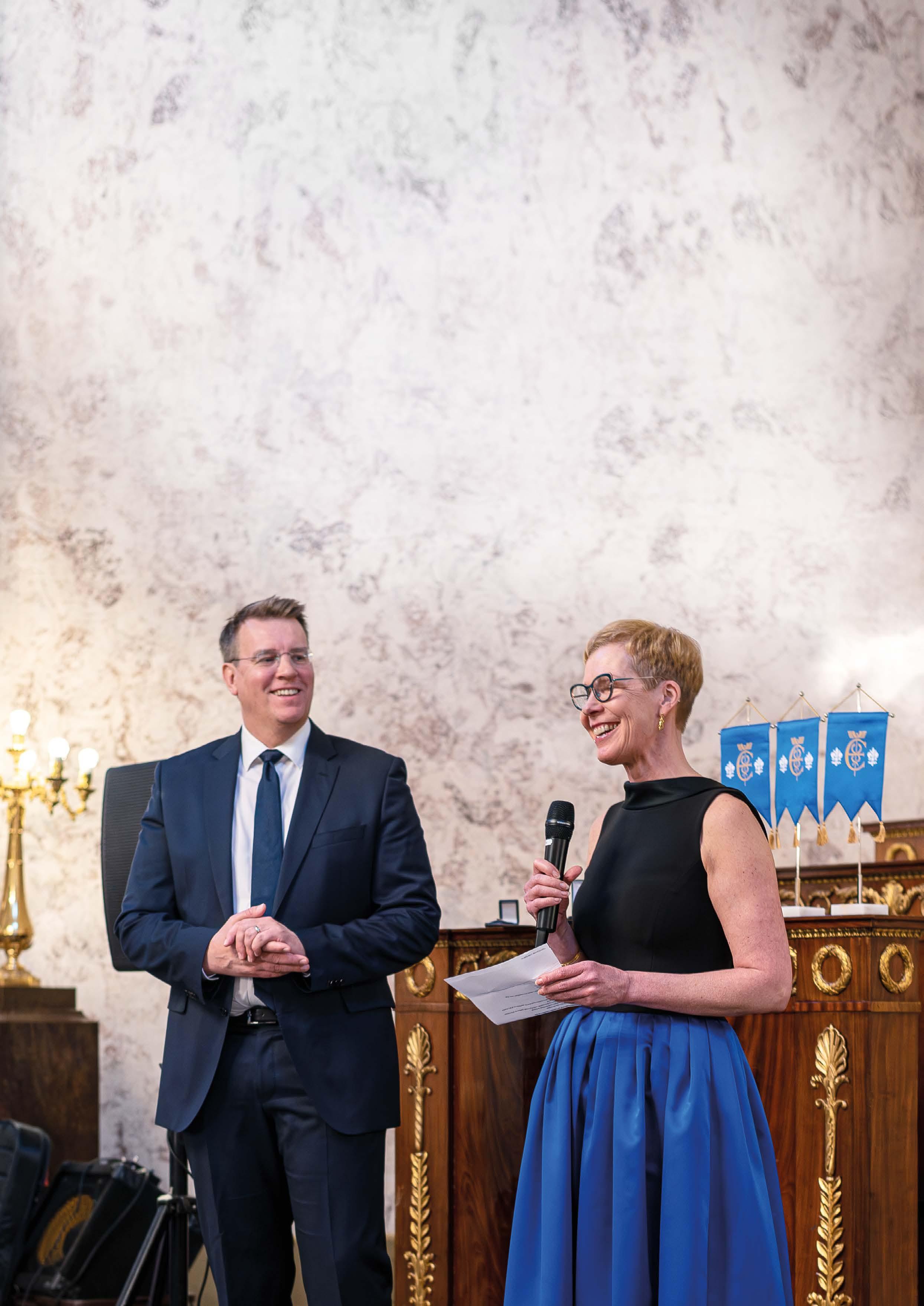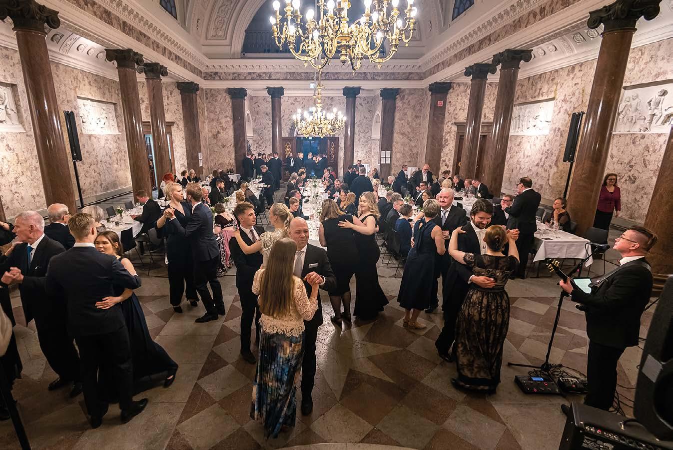 Kun Akatemiatalon ovet aukesivat kello kuudelta, oli vieraita kättelemässä yhdistyksemme puheenjohtaja Heli Hookana. Kutsuvieraiden joukossa kättelyyn saapuivat Turun kauppakorkeakoulun dekaani Markus Granlund sekä peräti kahdeksan yhdistyksen entistä puheenjohtajaa.