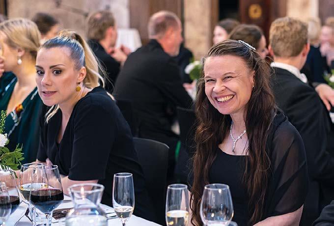 m ia ja kuvia 85-vuostisj u hlista!”8. 9. 10. 11. 12. 13. 8. Illan toinen juontaja Kirsi Pitkänen. 9. Yhdistyksen ex-puheenjohtaja Hannu Ketola. 10. Saara-Sofia Sirén ja Jaana Määttälä. 11. Kuvassa takana graafikko Jani Käsmä ja kylli Julia Kärna. Etualalla TSE ry:n ex-hallituslaiset Ringa Masalin ja Maija Rantapaju. 12. Paikallisten ekonomiyhdistysten edustajia. 13. Relax Corner.