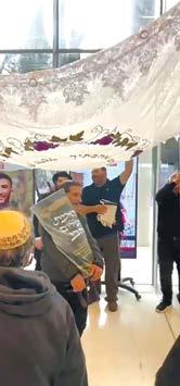 The new sefer Torah represented a joint effort: The parochet was designed by Bezalel students; the Torah mantle was donated by the family of fallen soldier St. Sgt. Shilo Amir; and the sefer Torah itself was a gift from Chabad on Campus. This particular scroll was restored after being damaged during the Simchat Torah massacre in one of the Gaza border communities.