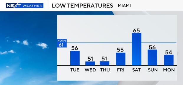 Looking ahead, Wednesday morning brought even cooler temperatures, as lows dropped to the upper 40s and low 50s across the region. The CBS Miami NEXT Weather team forecasted a low of 51 degrees in Miami, a number not seen since January 16, 2023. This dip in temperature was a reminder of the rarity of such chills in a place often characterized by its warm climate. In contrast to the 61-degree average low typically experienced this time of year, the striking cooler weather had residents reaching for heavier blankets and jackets.