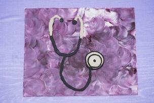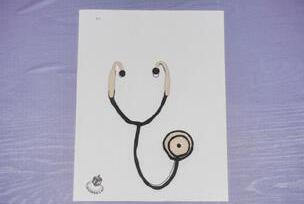 Once the canvas is dry, place the stethoscope in the center, and press it down on all sides to secure it. -Canvas -Parchment Paper -1 White Strip of Modeling Clay -1 Black Strip of Modeling Clay