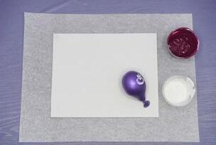 Blow up the balloon just a little bit so that it fits into the containers of paint, and tie it.