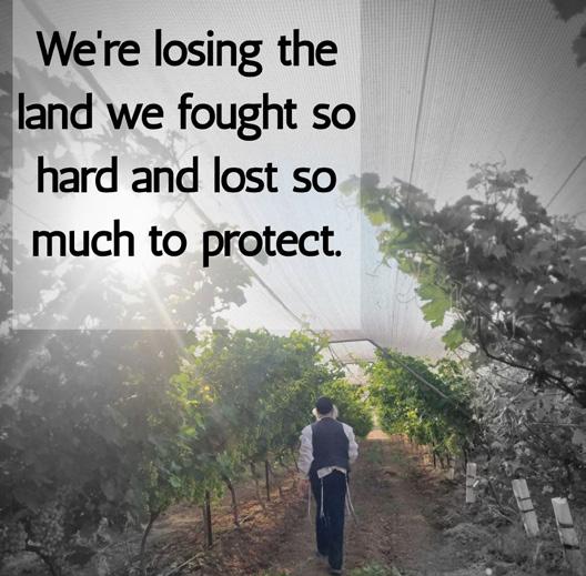 The farms are the first defense on the borders of Israel. When farms fail, our enemies take over that land; our borders become defenseless. Our safe spaces shrink. This was their plan.