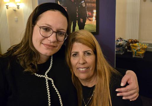 In the photo with me is Ayala Shkuri. Visible in the photo behind us are her daughter, police officer Mor Shkuri, who was murdered at the Sderot police station on October 7th, and Ayala’s husband, policeman Roni Shkuri, who was murdered in a terror attack less than a year later.