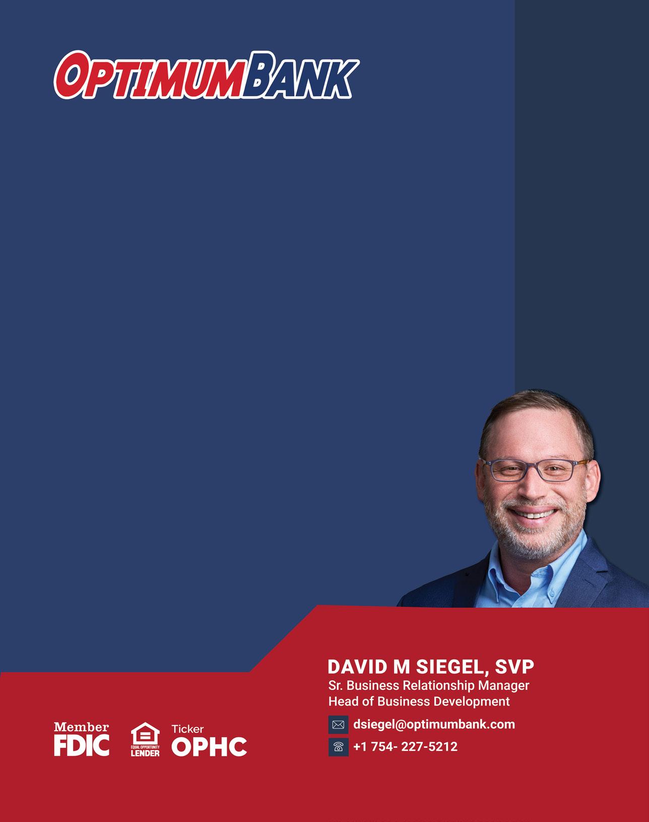 Call us today 754-227-5212 Visit [www.optimumbank.com] email dsiegel@optimumbank.com or stop by your neighborhood branch