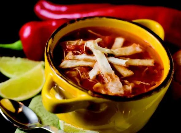tomatoes and lime juice. Bring the soup to a boil. Serve with fried tortilla strips for a topping and extra limes for squeezing.