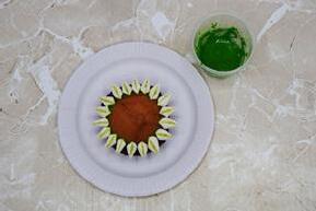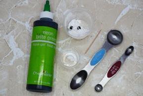 Mix 2 tbsp. of confectionary sugar with ½ tsp. water. Add 2 drops of green food coloring and mix well with toothpick.