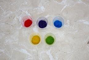 Pour each color of sugar into a small cup.