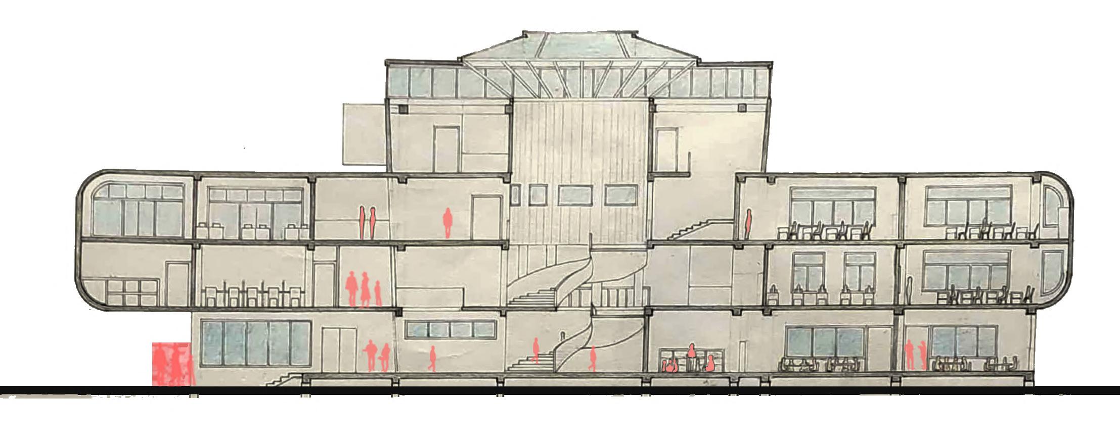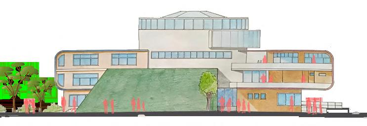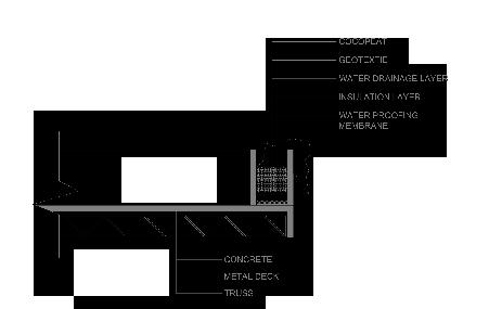 Roof is shaped like a ramp to allow full accessibility roof garden as well as socializing space.