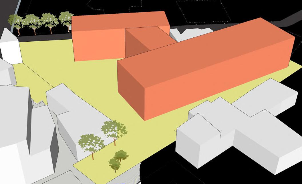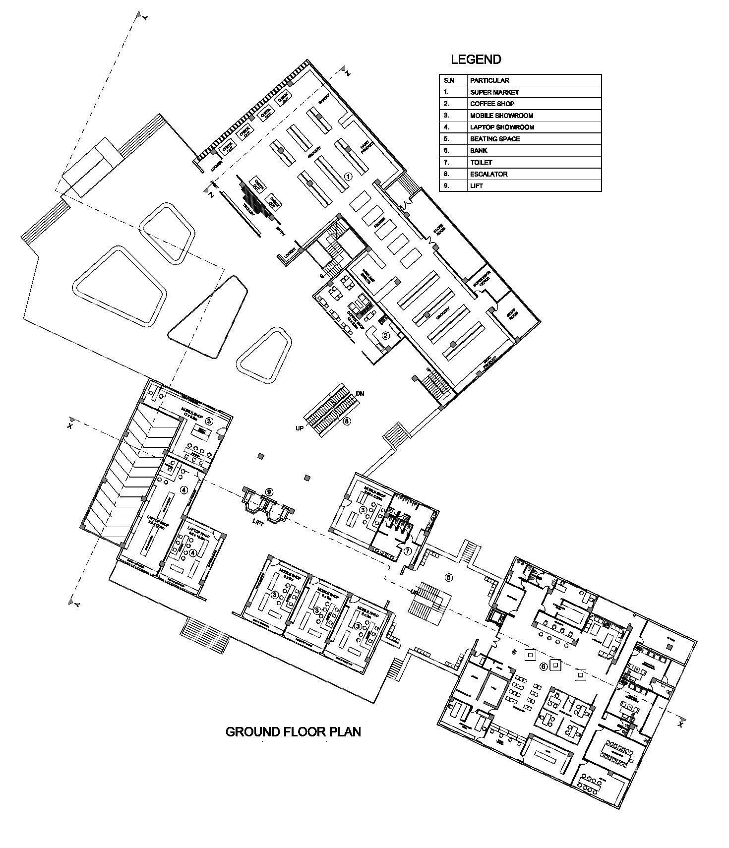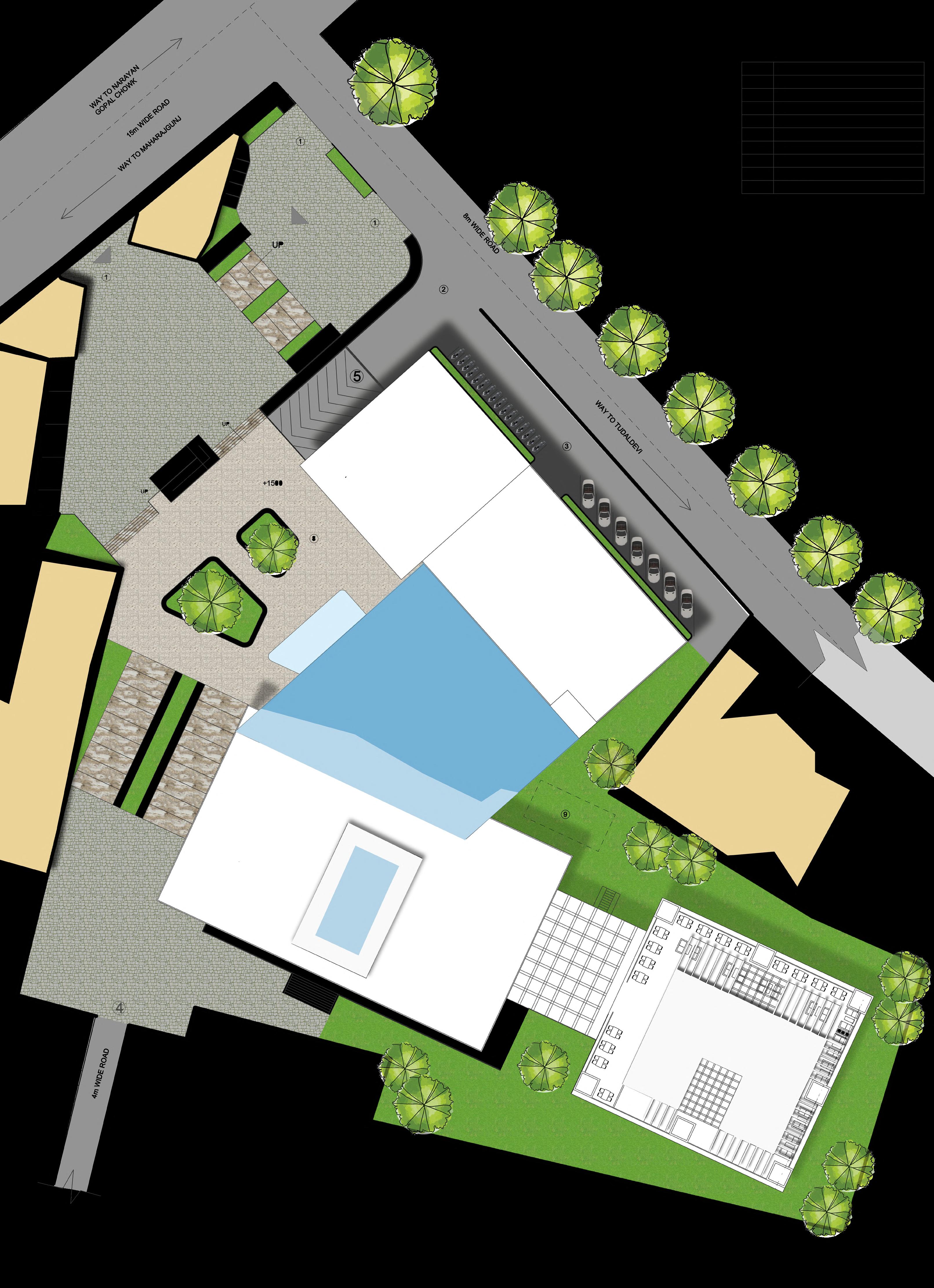 The existing site has an irregular shape, which poses a unique challenge for the proposed building design. Buildings are align with site considering public space and maximizing natural light. Plaza in the center of the building serves a dual purpose: not only does it provide a communal gathering space for visitors and occupants, but it also injects a sense of vibrancy and life into the area. The plaza becomes a focal point, drawing people in with its inviting atmosphere and serving as a hub of activity.