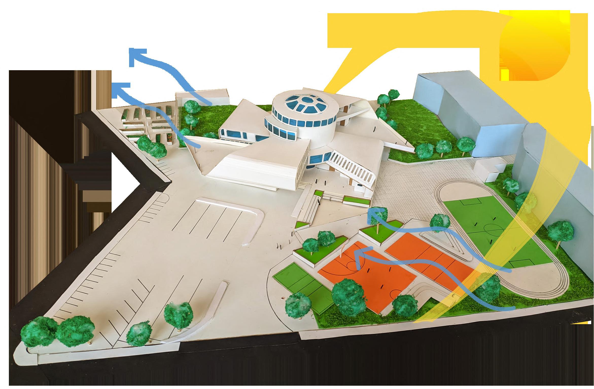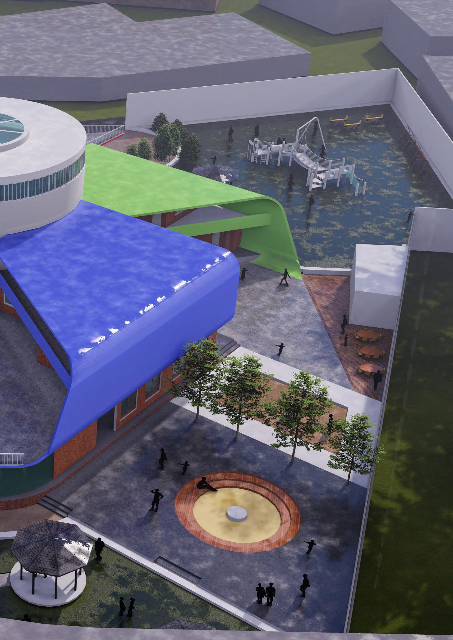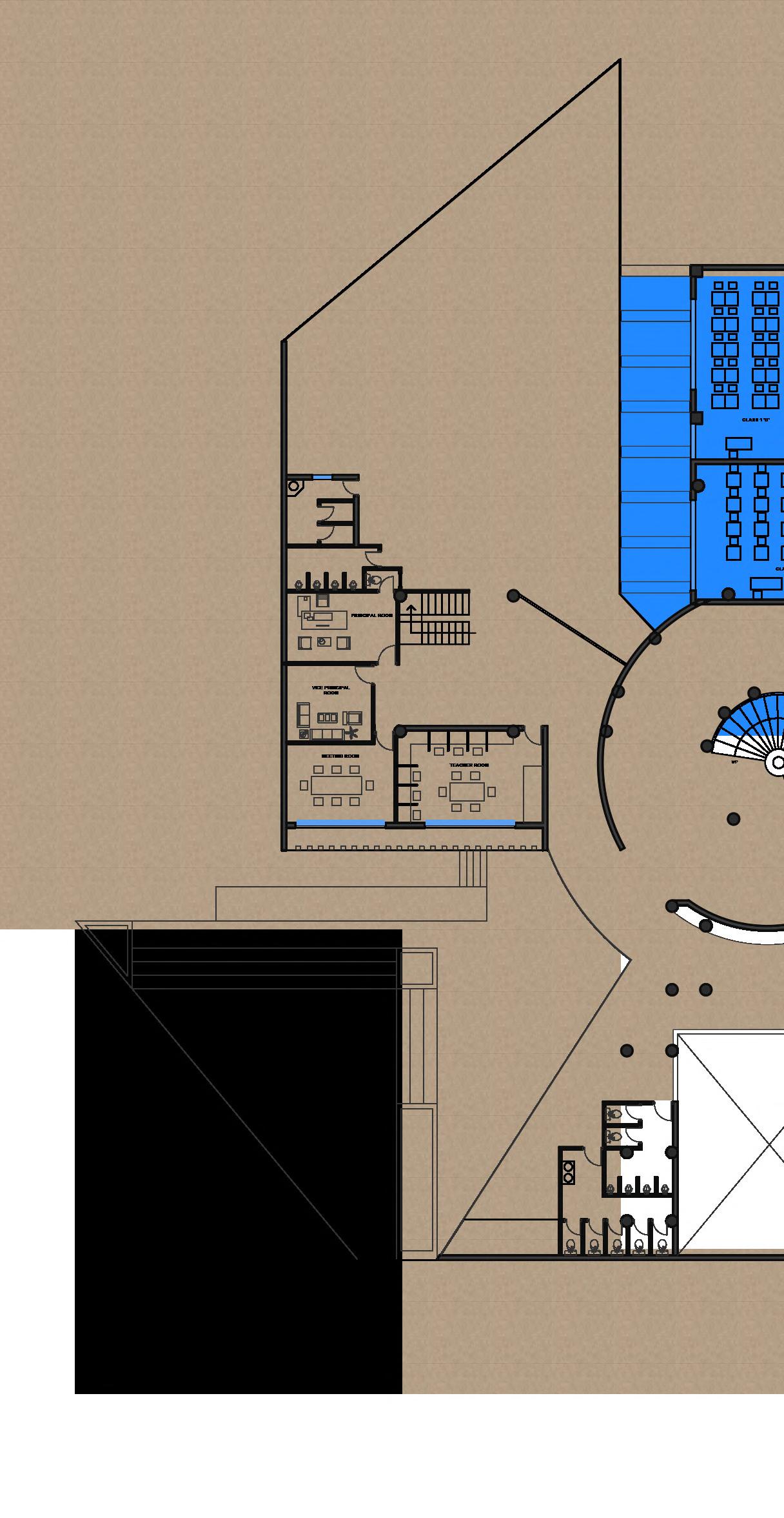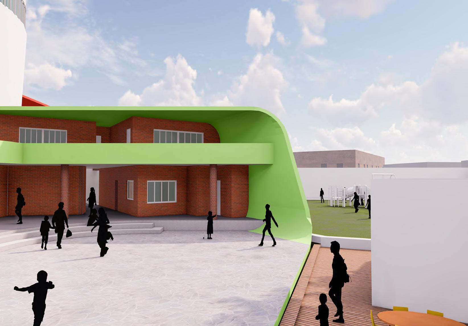 Primary school should have an environment that is safe, welcoming, and conducive to learning and development for young children. Taking inspiration from the paper windmill, a form that every child can relate. Like paper windmill consists of a central axis and rotating blades, it has a main staircase in centre which is connected to different wing. Bright and vibrant color emphasis the form and make visually appealing and inviting to young children