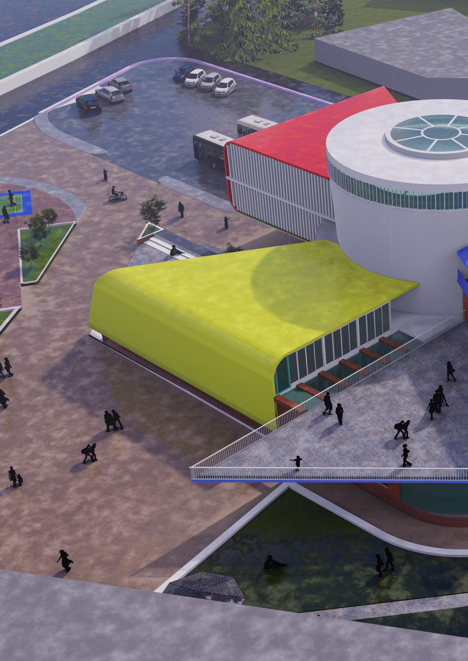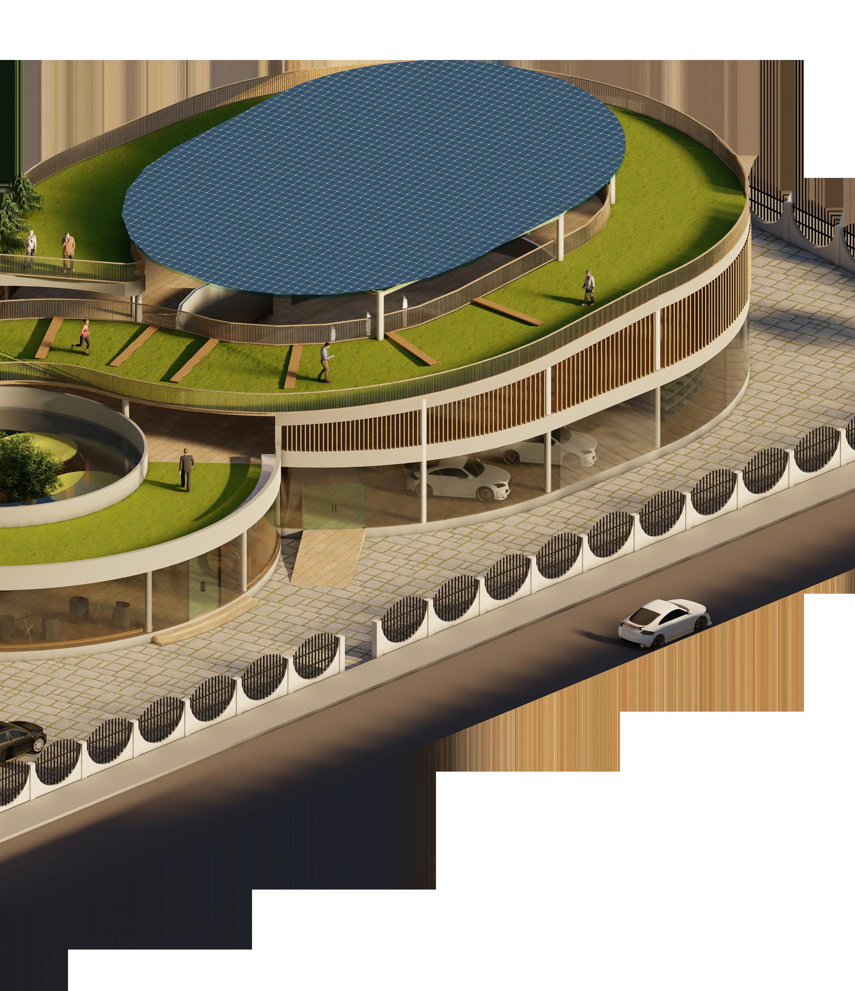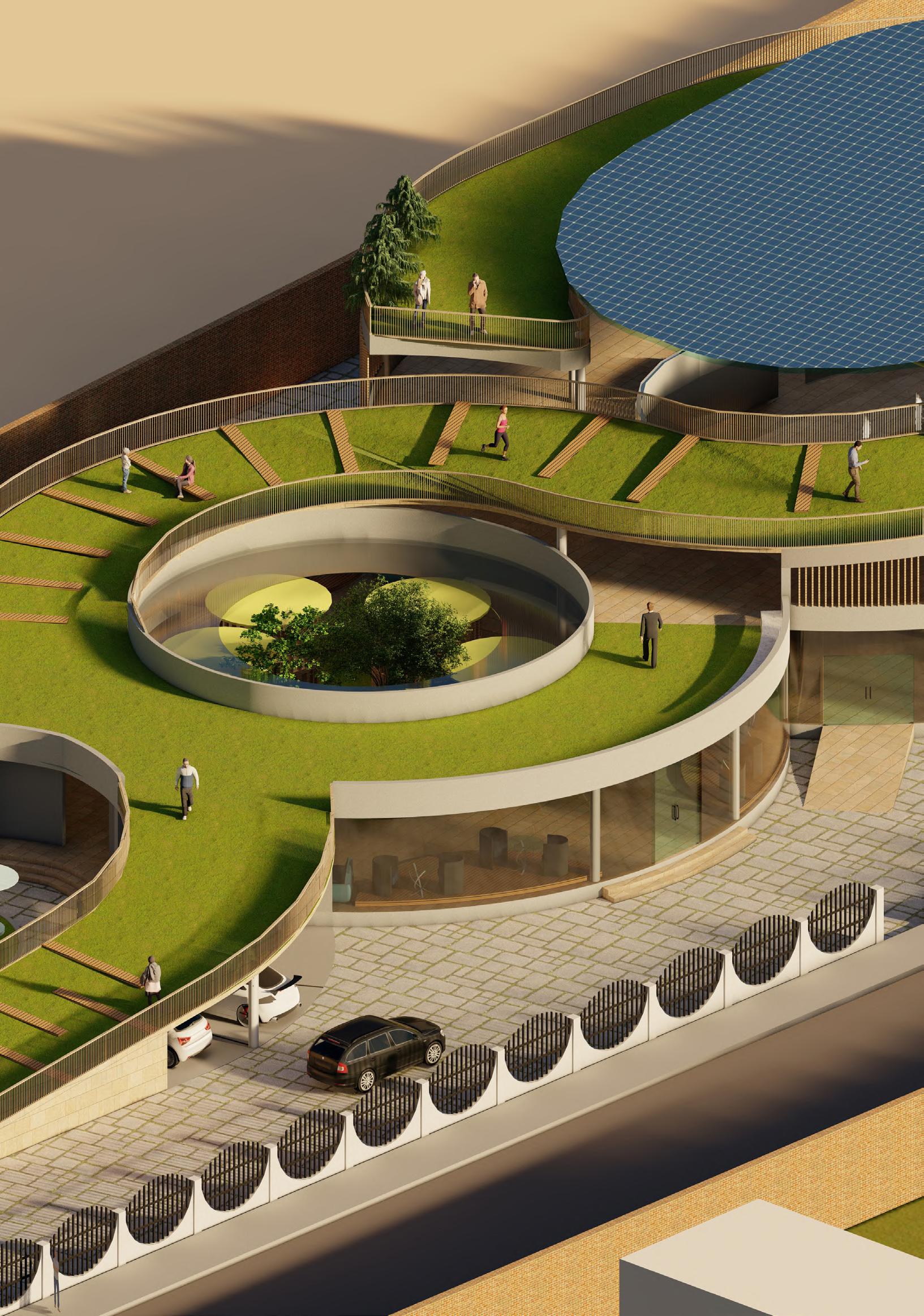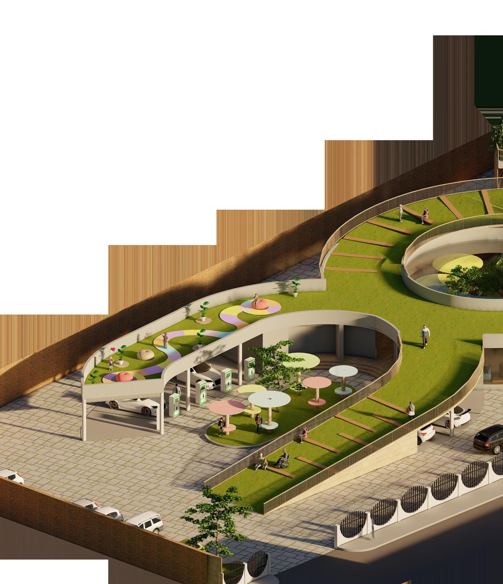 The key of the design concept was to go far beyond its built borders and integrate into the communityserving not only as a charging station but as a public space too. As in design, the ground floor serves different amenities and open spaces whereas the first floor serves as the park.