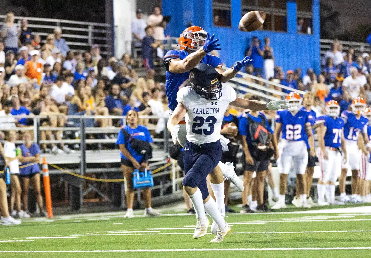 After cruising ahead to a 21-0 lead, a Sagehen field goal attempt was blocked by Carleton and re-