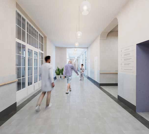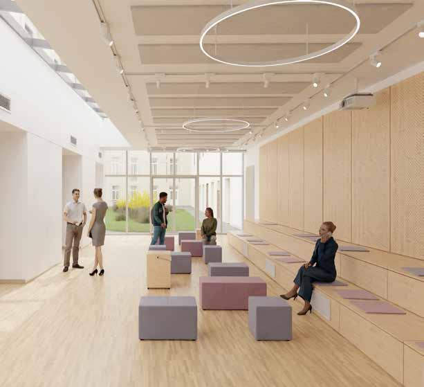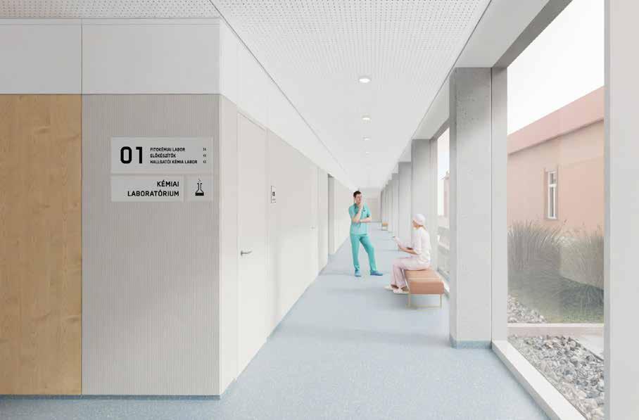 In the area behind them a modern educational building will be home to larger seminar rooms, auditoriums, digital knowledge storage, and some training laboratories that require less technology. The Hőgyes block, that is under historic protection, houses the largest new building of this project; in the basement, there is a one-storey underground car park, and upstairs there are several research and training laboratories, as well as facilities for pharmaceutical production.