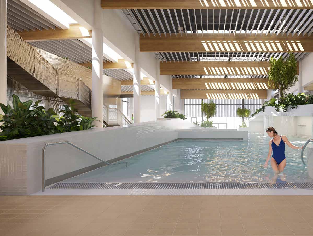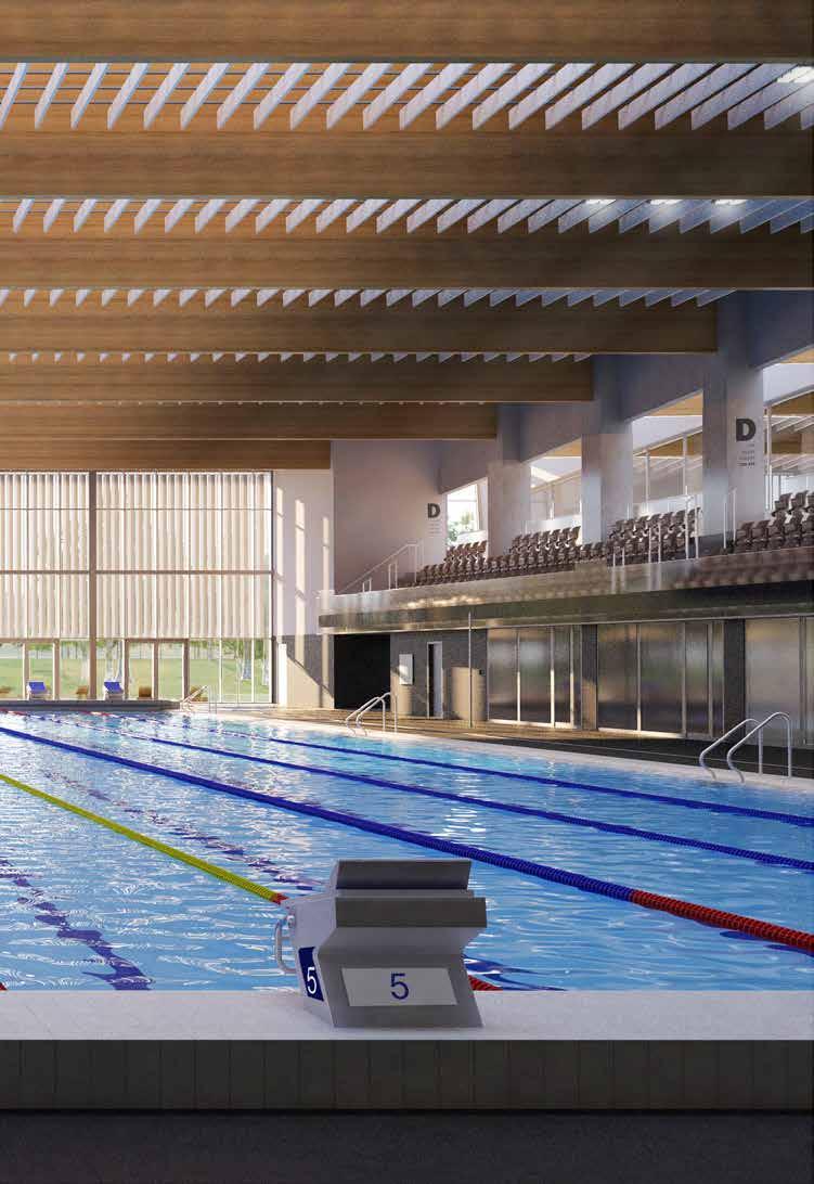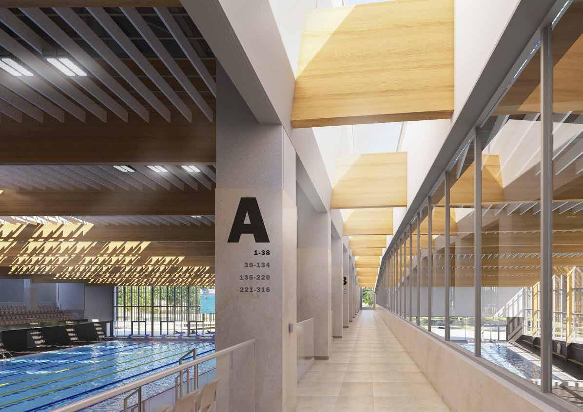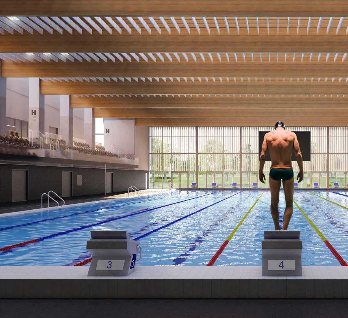 The investment includes the construction of an indoor swimming pool, featuring a 50-meter, 10-course FINA-compliant pool; a 25-meter, 6-track warm-up pool; a 20-meter training pool and an outdoor-indoor relaxation pool.