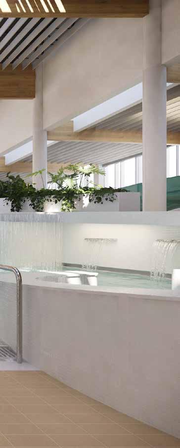 The new hospital building will include a day hospital function, a day surgery block, a musculoskeletal knowledge centre, a laboratory for clinical medical tests, a research institute to demonstrate the effectiveness of our medicinal waters, and new inpatient wards. In addition there is a large back garden with green areas and landscaping, a spa and pool area, a conference centre, terraces and an underground car park.