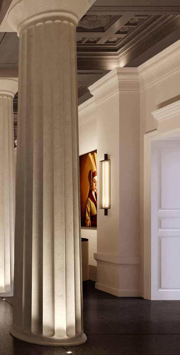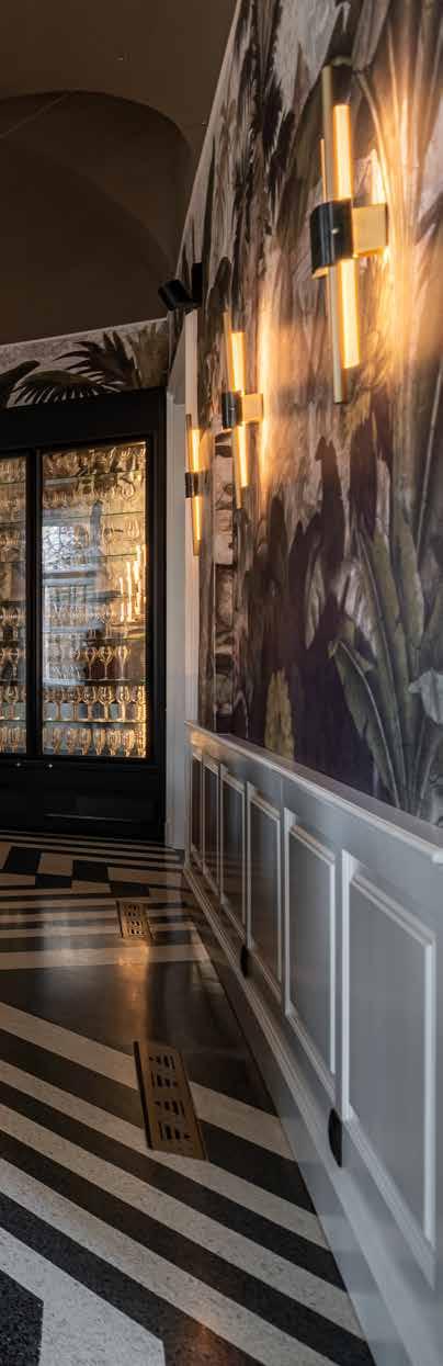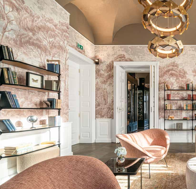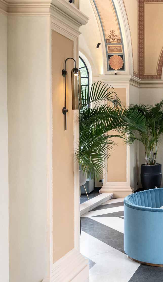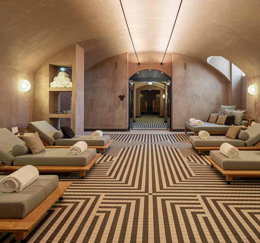 The wellness area with its indoor and outdoor pools has also been modernised. The interior design of the château is inspired by the original imagery of the Loire châteaux and has been designed to respect the elegance of the building. The wallpapers, which are reproductions of period wall paintings, or the terrazzo tiling, all evoke the château’s heyday, but the new geometric patterns, the innovative use of colour and the modern furniture bring the beauty of the original spaces to a whole new light.