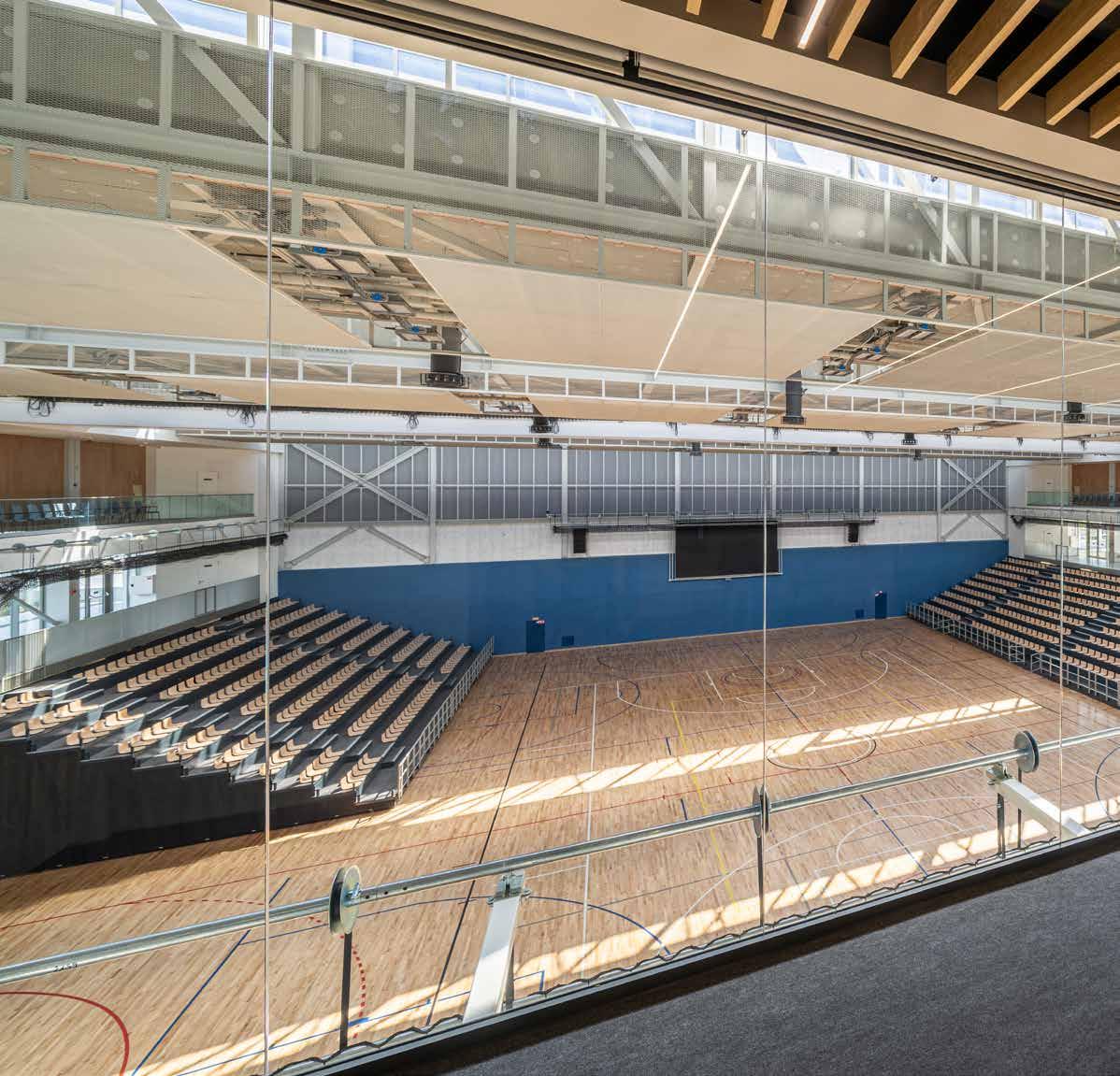 The sports complex offers several solutions for a sustainable environment: 320 new trees have been planted in the area, a 750-panel solar park has been installed on the rooftorp part of the building, and purified pool water that becomes redundant along with rainwater is used to irrigate surrounding green surfaces and green roofs. 188 bicycle storage facilities, 14 bus parking lots, 317 car parking lots and disabled parking lots have been set up in the area to facilitate easy and fast transport.