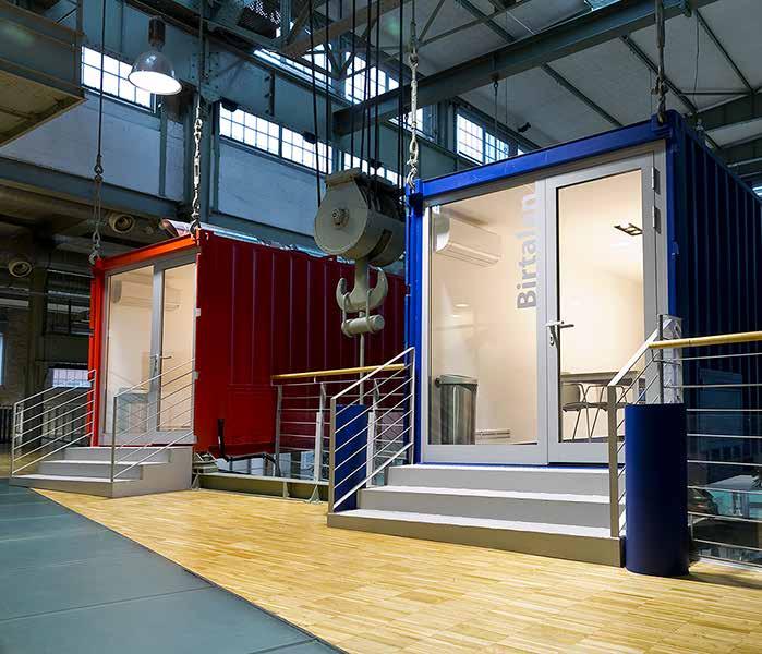 Millenáris Startup Campus is a place where talents, startups and actors from the world of innovation can work under the same roof. Desks are arranged in smaller groups of 4-6-8 persons, but smaller offices, in soundproofed but visually not separated glass cubes, and mini workstations converted from single, greenyellow telephone booths can also be found here.