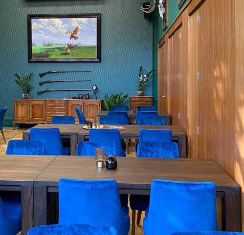 Several valuable hunting-themed paintings, hunting artefacts, trophies and antlers were found in the building, which were kept and used as a basis for the interior design.