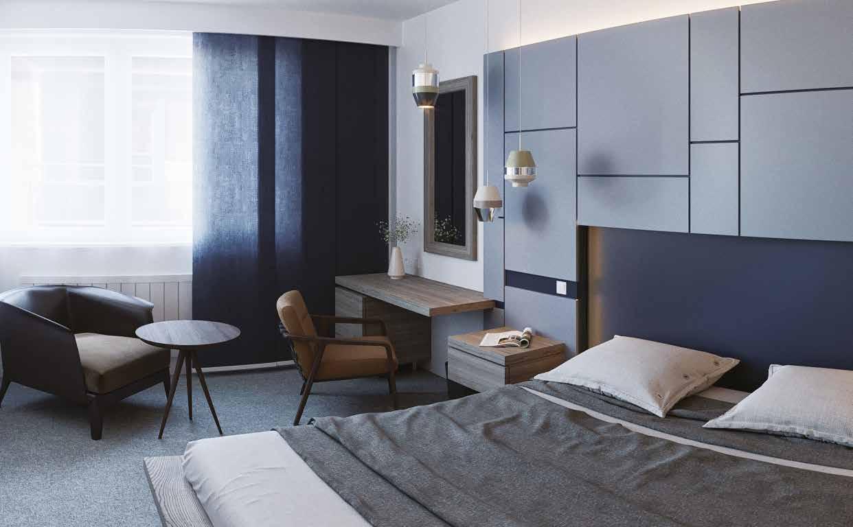 und geometrischer Merkmale und den verbindlichen Standards der Hotelkette deutlich. Bei der Restaurierung der in den 1800-er und 1900-er Jahren gebauten Fassade war das Ziel den ursprünglichen Stil beizubehalten, während das Dach, so erneuert wurde, dass es den heutigen architektonischen und technischen Standards entspricht. Die Gestaltung des Designs erfolgte in Kooperation mit einem italienischen und ungarischen Unternehmen.