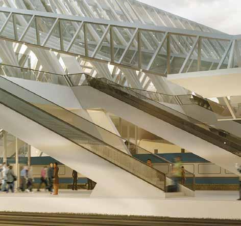 Durchgangsbahnhofs angeordnet ist, wurde neu geplant. In dem Gebäude befinden sich Fahrkartenkassen, die Passagierinformation, mit den damit verbundenen Büround Sozialräumen, die Vorhalle, die Wartehalle, die Gastwirtschaften, die notwendigen Sanitäreinrichtungen, der Aufenthaltsraum des Sicherheitsdienstes, die erforderlichen Lagerräume, der Maschinenraum und der Elektro- und Telekommunikationsraum. Sowohl die Brücke als auch das Empfangsgebäude wurden für die Öffentlichkeit zugänglich gemacht.