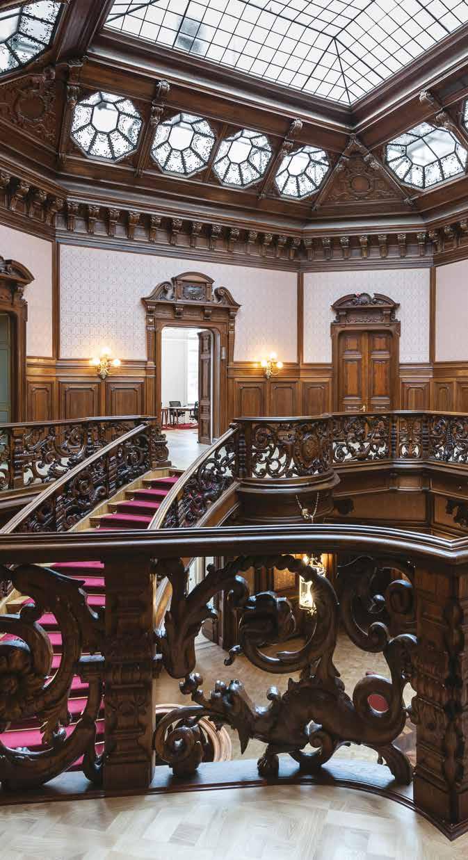 frühzeitig abgeschlossen werden, sodass die fragmentarische Sammlung der ehemaligen Bibliothek hier untergebracht werden konnte. Die Rekonstruktion des Wintergartens ist ein wichtiges Element für das äußere Erscheinungsbild des Schlosses und für die Organisation von Veranstaltungen. Dieser Teil des Gebäudes, der einst vollständig abgerissen wurde, wurde nun anhand von Fotos neu aufgebaut.