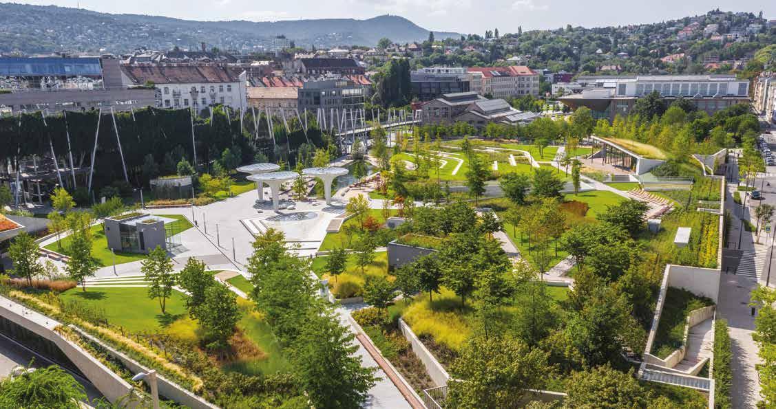 Der größte Erholungspark von Mitteleuropa mit einem dreidimensionalen Hängegarten, einem Kirschbaumhain, mit spektakulären Design-Solarzellen und 355 neuen Bäumen hat eröffnet. Der Park wird in drei Teile organisiert: eine üppige, dichte Pflanzenschicht steht für die Wälder, eine Wiese aus Wildblumen für die ungarischen Wiesen und ein 650 m² großer künstlicher See für die Welt der lebendigen Gewässer.