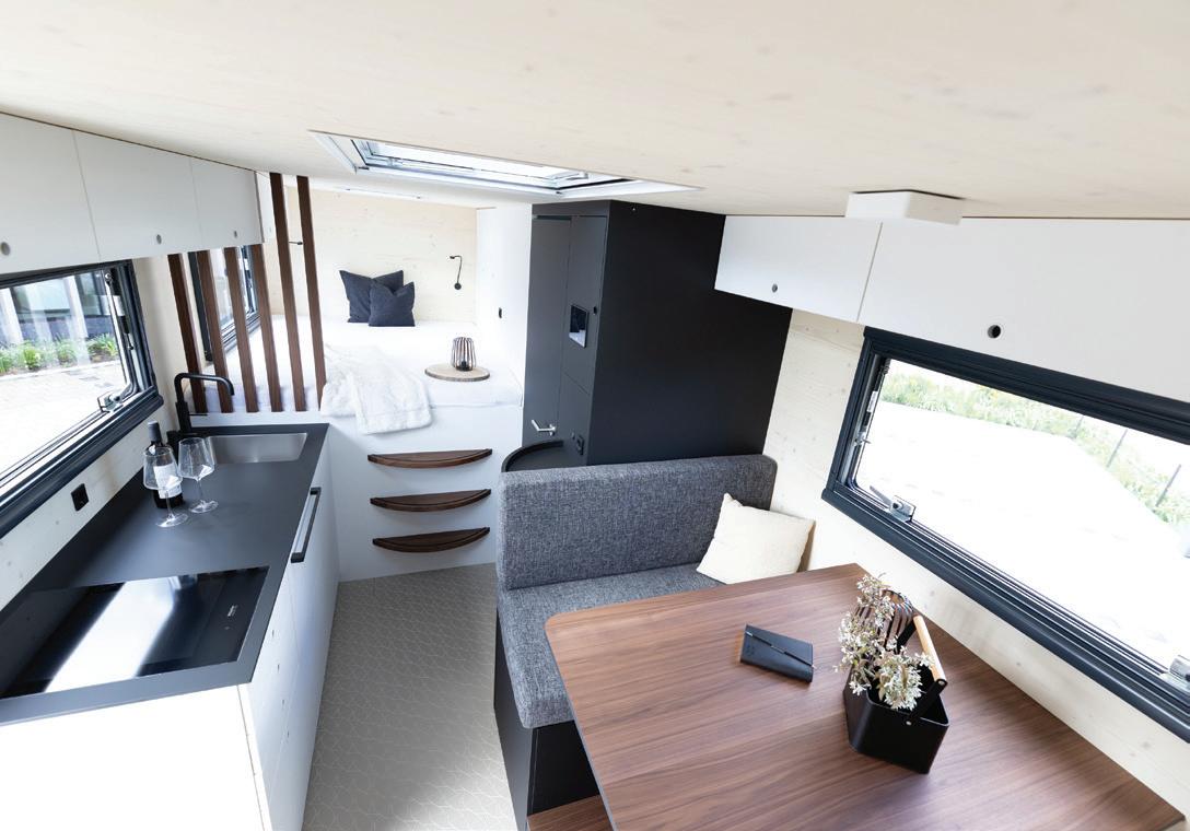 Beer GmbH, led by Master Carpenter and Managing Director Christian Beer, proudly introduces the RoadXplorer, a unique and meticulously crafted mobile home on wheels. The RoadXplorer is a testament to premium quality and high-tech materials like HIMACS Solid Surface. The interior floor acts as the frame, a seemingly endless CNC pattern milled into the HIMACS Solid Surface material. HIMACS is not only perfect for underfloor heating, it is also easy to clean, robust and resistant to water, frost and UV light. The warm HIMACS Babylon Beige tone radiates serene harmony. The floor extends from the entrance area through the dining area to the bathroom - seamlessly in one piece. The creative diamond pattern provides increased slip resistance.