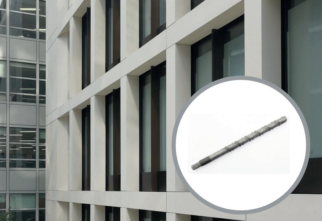 Excalibur, inventors of the SCREWBOLT, the innovative highstrength twin helix threaded anchor, has enabled the cladding contractor at a landmark London building to deliver a bomb-blast solution for fixing a high performance glazed curtain walling system to a steel frame. After struggling to find a fixing that could cope with the blast loads on the glazed screens they turned to Excalibur to find a solution for fixing the bomb blast steel work to the building’s concrete frame. A full-size bay was built to test Excalibur’s SSB20 x 230 STUDBOLTS so that this high-performance bomb blast façade to proceed. The high strength 20mm x 320mm Excalibur Screwbolt met the structural engineers onerous tensile & shear performance criteria.