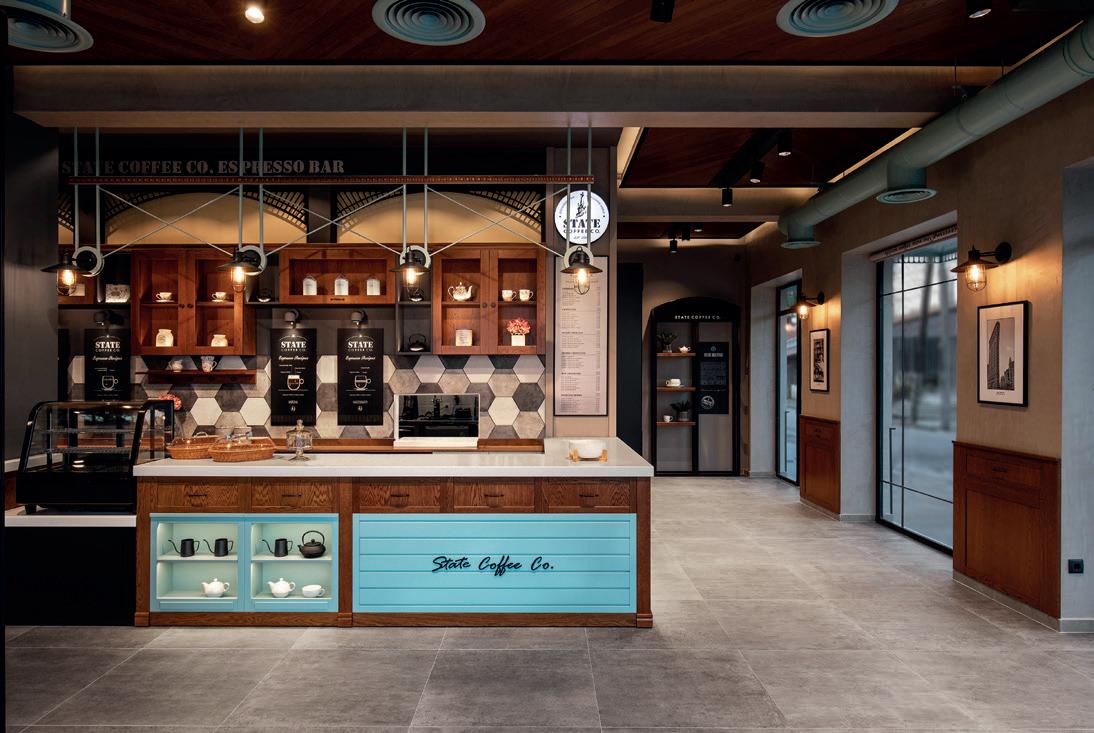 Lab4 Architects chose HI-MACS® for the latest espresso bar in the Greek coffee bar chain State Coffee Co., which has opened in Agria, a town on the Gulf of Pagasai in eastern Greece. Clearly visible through the large storefront windows, the bar itself sits in the middle of the coffee shop and has a large rectangular counter featuring a durable top in HI-MACS® with an Arctic Granite G034 finish.
