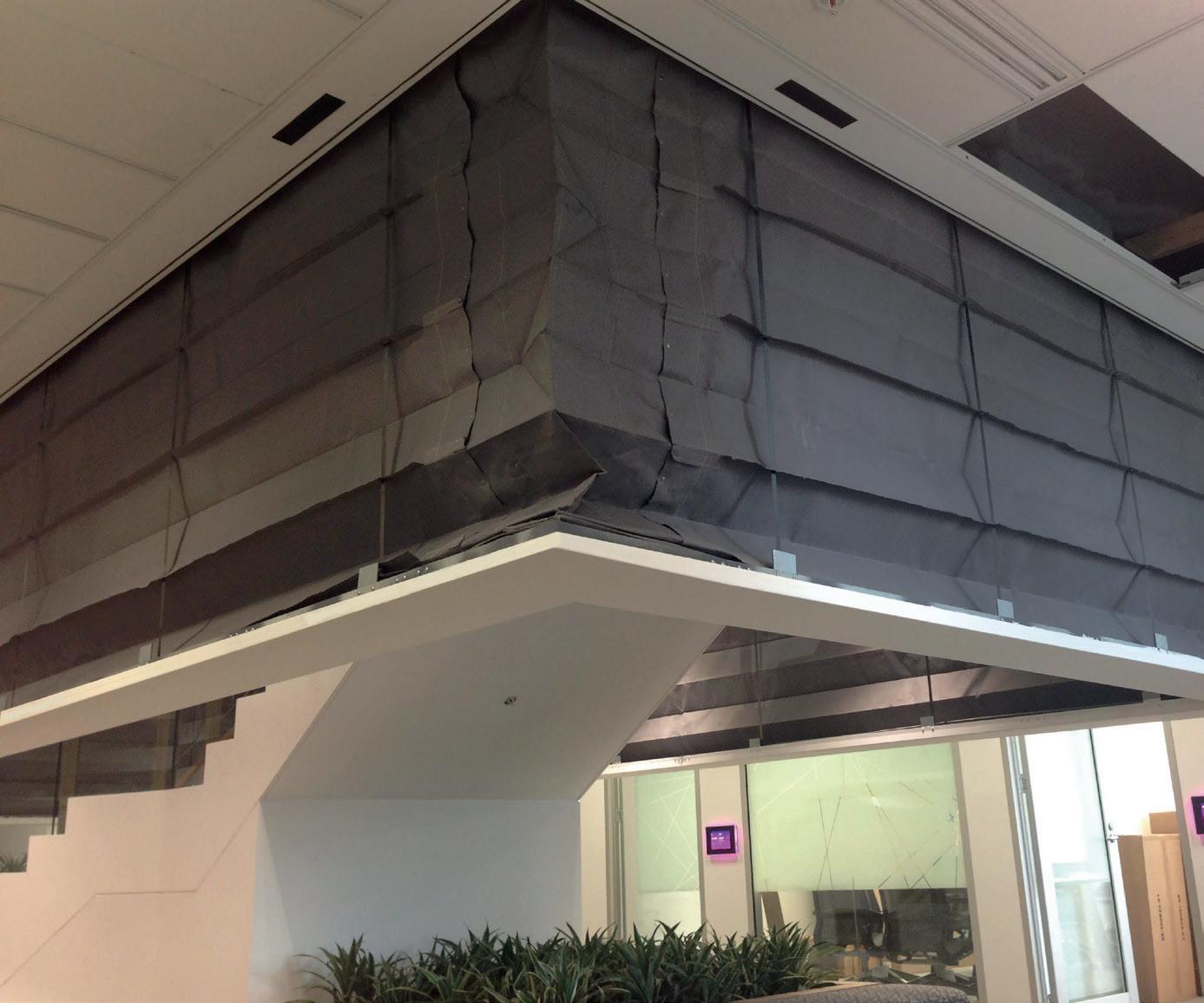 Hunter Douglas Architectural, the global architectural products provider, was specified to supply 350m2 of its award-winning Heartfelt® felt ceiling system in the lecture theatre and seminar rooms, supplying panels 55mm depth (40B x 55H mm) in midgrey, with some sections installed in a barrel vault design.