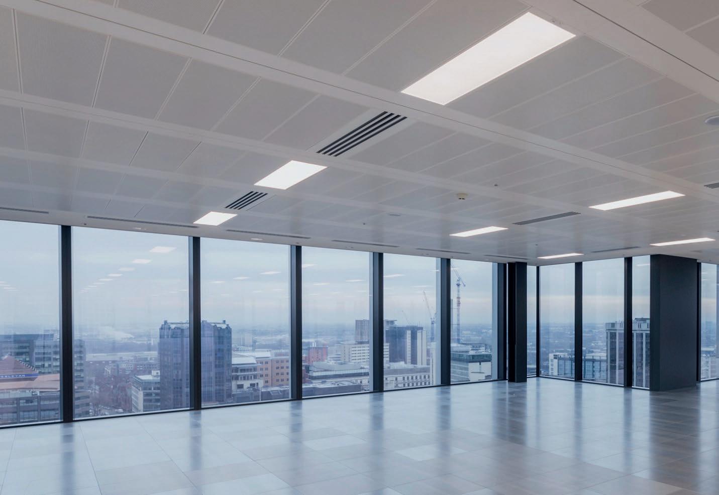 The 103 Colmore Row development in the heart of Birmingham’s business district is the city’s tallest office building, and “one of the cleanest and greenest”, achieving BREEAM Excellent. Air movement specialist Gilberts worked closely with BAM Arup to refine the specification of the grilles and diffusers in line with the requirement to achieve ventilation of 12l/person and a constant 22°C(±2°) through GSL linear slot diffusers. The GSLs ventilate almost 90% of the 30 levels including lower ground and basement. Fitted into bulkheads around the perimeter of each office floor, the slot diffusers provide supply and extract of air and ensure a consistent and constant view through the floor to ceiling glazing. The GSLs were also installed into plank ceiling tiles to deliver air on each level.