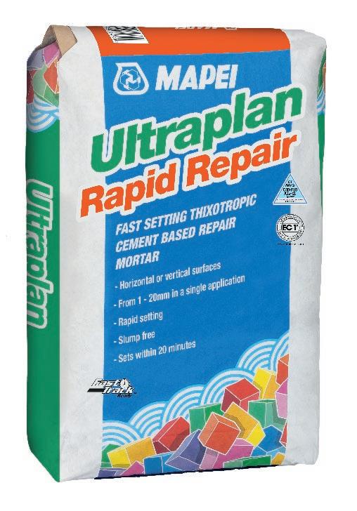 When mixed with water Ultraplan Rapid Repair become an easily workable thixotropic mortar with high bond strength and rapid drying time. It can be trafficked in as little as 120 minutes and hardens without shrinkage minimising the possibility of cracking or crazing, developing a high compressive strength and very good resistance to impact and abrasion.