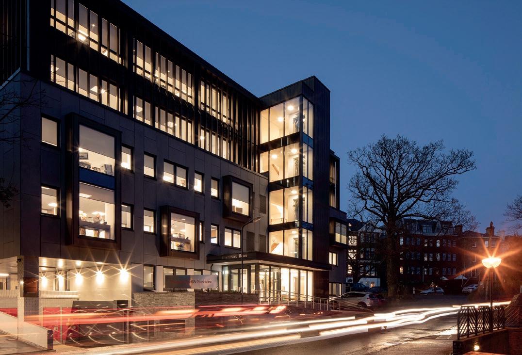 Installed alongside some interesting brass architectural detailing, TECHNAL aluminium window, curtain walling and doors have been specified and installed at Heathervale Housetransforming the outdated offices. The entire façade was re-clad with concrete tiles, with interesting projecting brass window boxes also incorporated. The window boxes, which feature TECHNAL systems, added visual relief to the building externally, whilst maximising internal vistas for occupants. TECHNAL also assisted on a large rear extension, a new glazed lift to the front and two additional fully glazed storeys on top of the existing roof. Flooding the new office spaces with daylight, the large glazed expanses are shaded by two-storey bronze louvres.