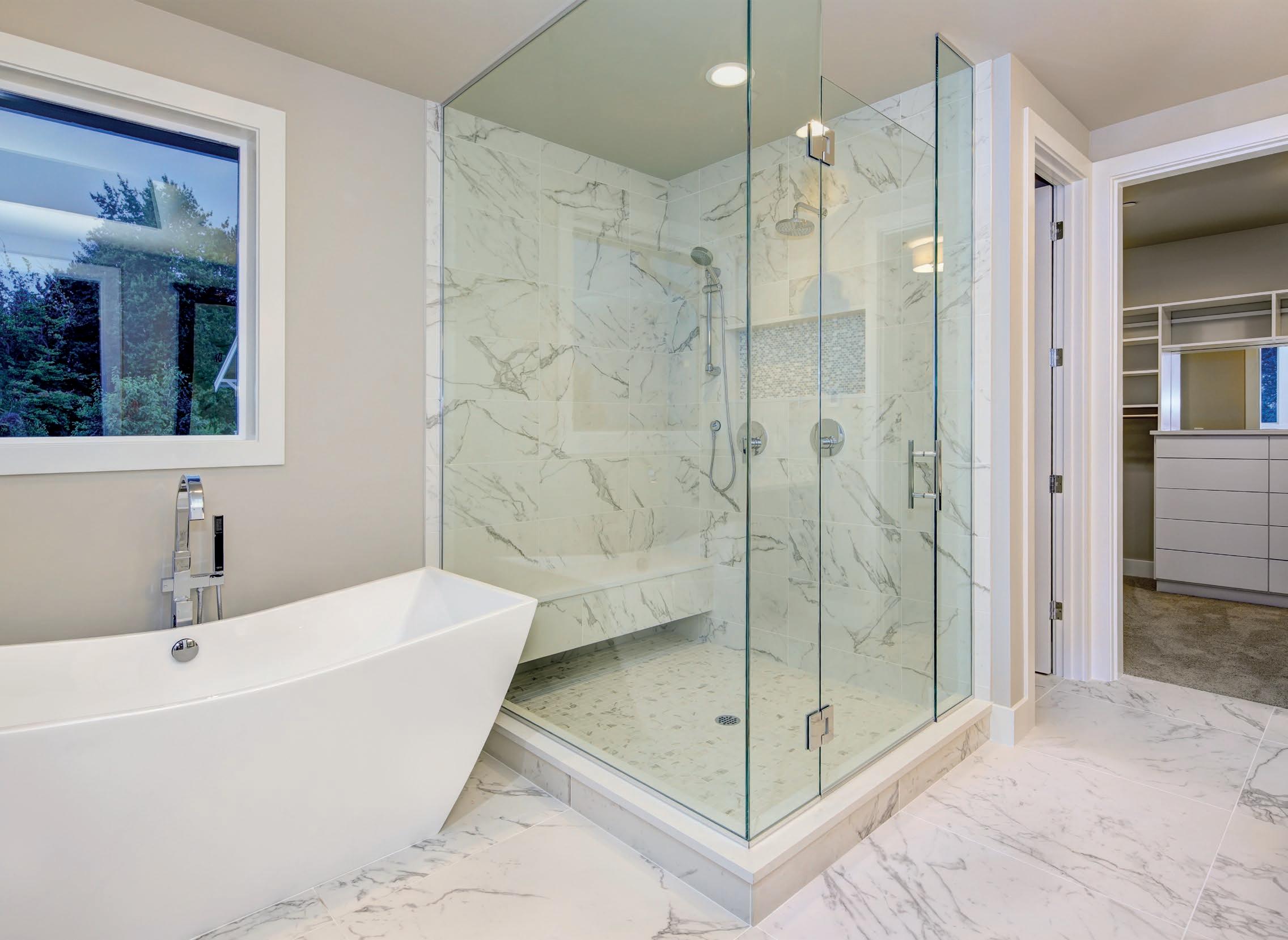 Sliding glass shower doors are also a great option for creating calm spaces and modern bathroom designs. The