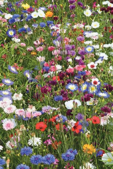 The chosen mixes were: Flora Britannica – 26 species including Black Medick, Viper’s Bugloss and Red Clover; Rainbow annuals –14 species including English Marigold, Tickseed and China Aster; Posy (cut flower mix), comprising 12 species; Sarah Bouquet – 30 species; Peace (white), six to eight species; Honey – 12 species including Borage, Cosmos and Baby’s Breath; and The Souvenir 100% Red Poppy mix.