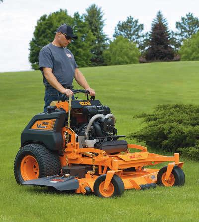 damage – even on sloping terrain. The two machines powered by either a Kawasaki or Kohler engine also feature patented Synchro Steer technology to retain full control of the front wheels. Steering and drive control are synchronised to help control the speed and rotation direction of each rear wheel, whatever the position of the front wheels.