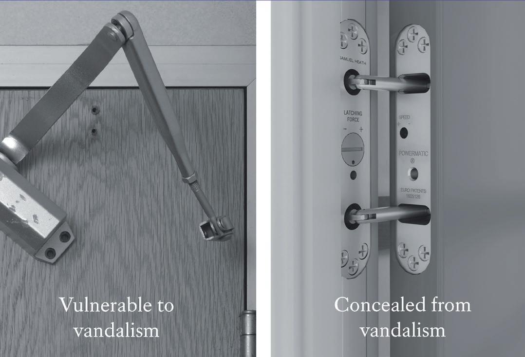 Highly visible, surfacemounted door closers are an obvious target for removal, vandalism and misuse.