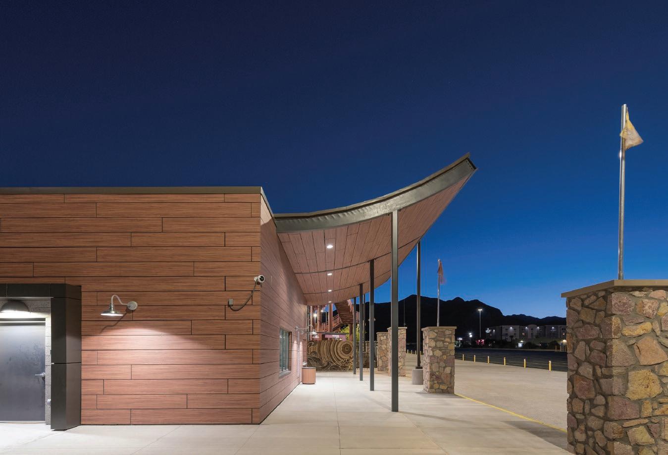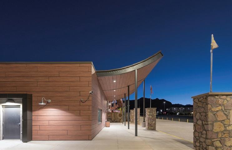 Parkhill Architects were appointed by El Paso City Authority to design three new waterparks and it was decided to use Abet Laminati’s MEG exterior grade laminate. MEG 754 Padouk was specified as the architects were looking for wood effect cladding which would complement the camp theme and which could be cut into planks to simulate a cabin.