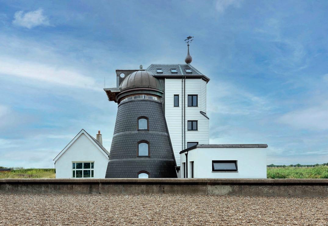 CUPA PIZARRAS R17 slate has been specified to meet the design challenges of a former Georgian windmill renovation at Fort Green, near Aldeburgh in Suffolk. Originally, the windmill walls were going to be clad in cedar shingles however, contractor ELC Roofing recommended using the rectangular CUPA R17 slate from CUPA PIZARRAS as a more weather-resistant alternative. The slates, which protect against the salt water and wind, have been fitted on both the windmill’s curved wall, its pitched roof and elsewhere adding design details to the property’s walls. Every single slate was cut and fixed individually to accommodate the curve and ensure they aligned with the building’s inset windows as well as other architectural details.