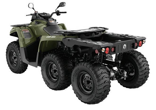 The new Can-Am Outlander 6x6 450Tispoweredbythereliable38 hp single-cylinder, liquid-cooled Rotax 450 engine and comes with industry-leading towing capacity (1,650 lb/750 kg), front and rear racks with cargo extenders, and LinQ accessory attachment points.