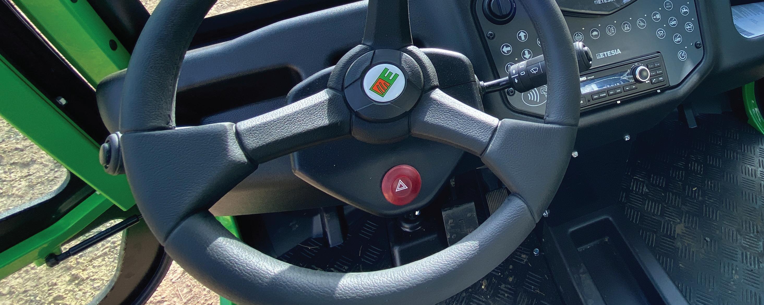 or can be supplied with an electric tip. Independent suspension and a wide cabin gives a comfortable and spacious ride for three persons.