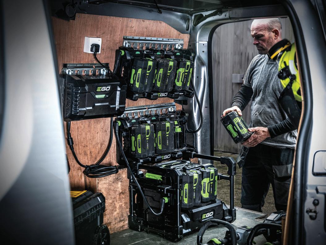Launching later this year is EGO’s new commercial charging system, giving professional groundscare, gardening and landscaping teams the power they need to do a full day’s work without running out of charge.