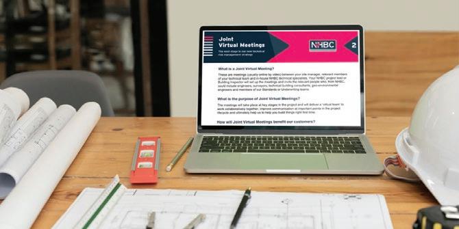 On new sites, Joint Virtual Meetings (JVMs) will be delivered virtually via MS Teams or another appropriate platform, to enable NHBC to work collaboratively with its builder customers without the need to be in one physical location together. These meetings will improve communication between NHBC and the builder customer at key points in a project, allowing all those who attend to obtain a greater understanding of the project and its requirements. JVMs will be more effective and collaborative, allowing a wider group of people to attend and facilitate the resolution of any design issues quickly together rather than via conditions or emails.