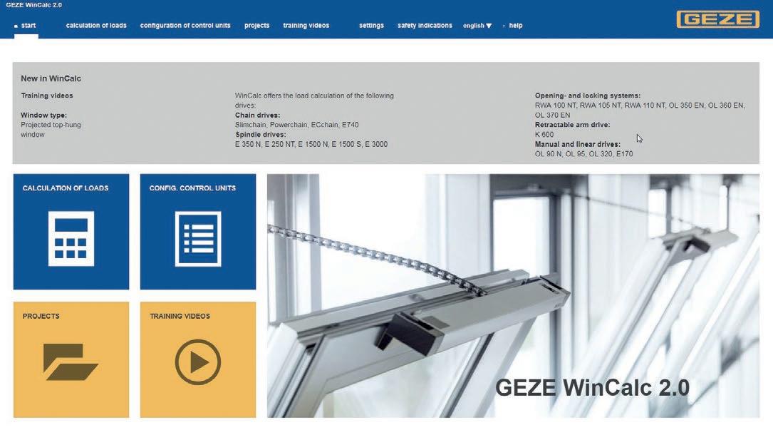 A time-saving tool to help professionals tackle complex calculations for the design of window systems has been launched by GEZE UK. WinCalc 2.0 is an online specification platform that allows users to populate design and specification data to identify and plan suitable window configurations. The system is intended for architects, architectural ironmongers, fabricators, M and E (mechanical and electrical) companies and consultants. WinCalc 2.0 can be used on computers or tablet devices and has a new user interface with advanced calculation options and a shortened calculation methodology. It provides a range of information that can be downloaded including calculation reports, bill of materials and diagrams which can be saved in pdf format.