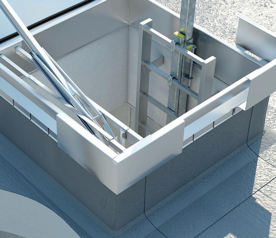 But simply add a fixed ladder with the optional LadderUp® Safety Post, and you also have a safe exit out onto the roof.